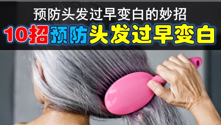 為什麼會在30歲之前長出白髮?白髮主要是由於黑色素缺乏而引起,黑色素的主要作用就是使 頭髮呈現自然的黑色。隨著年齡的增長,人體產生的黑色素會越來越少,頭髮變白是很自然的事,然而健康的生活方式卻可以推遲頭髮變白的時間。下面10種白髮 剋星,如果能好好利用,就能有效幫助你預防頭髮變白。 1. 解除壓力 壓力是提早出現白髮的主要原因之一,也使得我們更快老去。為了不讓自己比實際年齡顯得還老,聰明如你應該儘量給自己多點時間可以放鬆,哪怕只是工作一天之後泡個舒服的澡。我們要學會積極的生活,學會說「不」,鎖上浴室的門,讓自己享受片刻的寧靜! 2. 停止吸煙 研究證明,吸煙會導致身體過早老化,因此戒煙應該是你行動的第一步,停止吸煙還將改善血液循環,這也可以幫助減少白髮產生。