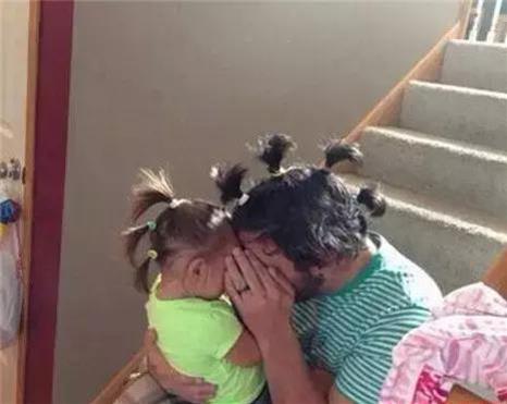 嗯,我的小公主梳的頭髮就是世界上最漂亮的!來,給爸比也梳個一樣的!