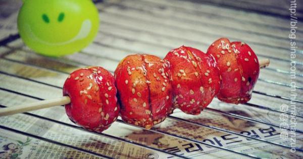 9.做好的糖葫蘆要留有間距的排放,以防流動的糖互相粘在一起。