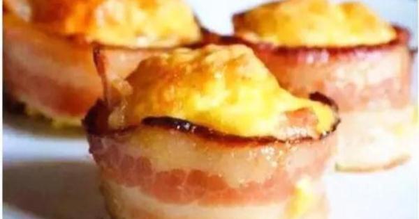 1.將圓培根周邊卷褶,墊在碗內,留一個雞蛋的空間,將雞蛋打進去,撒上胡椒粉和香蔥末。