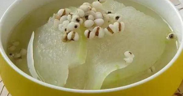2.處理好的冬瓜,薏米加適量的水燒開再小火燉10分鍾左右就可以。