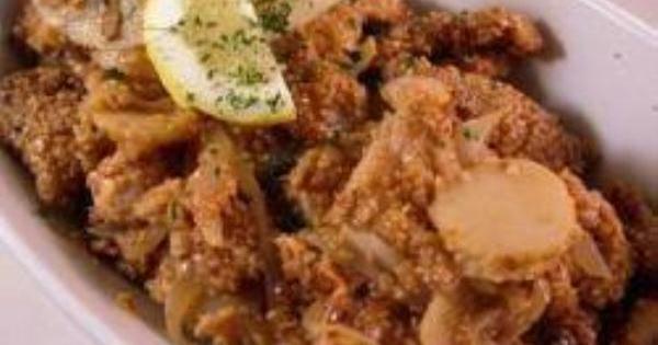 3. 將1個檸檬榨汁,加入檸檬醬、紅糖,將檸檬皮也磨碎加進去拌勻備用。鍋裡留下2湯匙油燒熱,放入洋蔥炒香,放入芝麻雞、荸薺,加入檸檬榨醬汁翻炒均勻,裝盤。