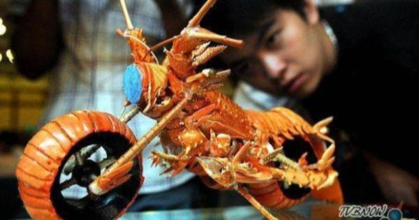 藝術!吃剩龍蝦殼變「迷你摩托車」!