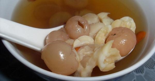3、桂圓肉20克,放進300毫升的沸水浸泡約5分鐘後食肉喝湯。可補血醒神,為經常熬夜,快節奏生活人士等人士提神的首選。