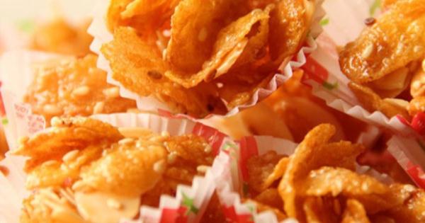 加入玉米脆片和葡萄乾,刀切方式混合,避免玉米片碎掉。