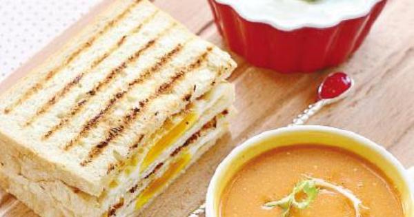 番茄濃湯這款充滿意式風情的小食,用料考究,濃濃的意式風味能贏得孩子的喜愛,還能提供豐富的維生素和礦物質。煎蛋三明治製作簡便,作為主食,除了提供碳水化合物外,還能提供豐富的蛋白質。獼猴桃果粒優酪乳,其中的乳酸菌能改善腸道菌群,促進腸道毒素排出。