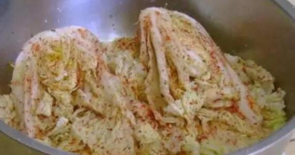 方法: 將大白菜葉稍和老幫去除,用水洗淨,控幹水分,切成菱形狀,倒入盆內,撒上少許鹽醃漬一下後瀝去醃水。然後將各種調味料放置一容器內搗爛後和白菜拌勻,再將拌勻的白菜裝入缸內,壓緊封好口,約一星期後即可取出食用。