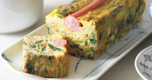 將烘蛋做成蛋糕造型,再把好多五顏六色的蔬菜藏在裡面,