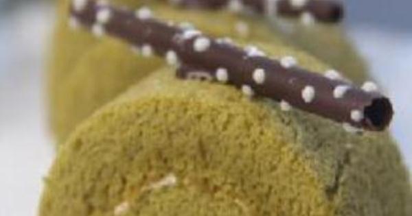 10、蛋糕冷卻後,在桌面墊張紙或錫紙,蛋糕放到紙上,蛋糕面上抹一層薄薄的奶油,把蛋糕卷起,卷好的蛋糕靜置10分鐘,防止鬆散。