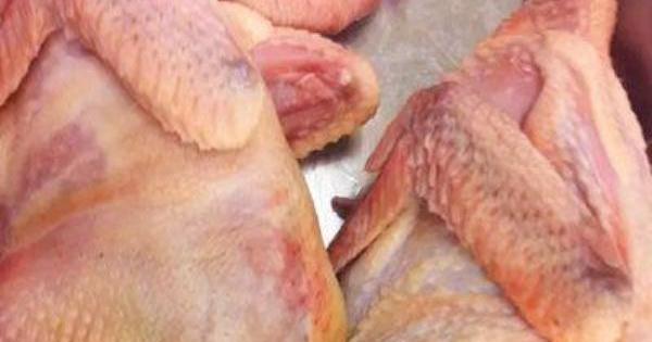 當雞被宰殺之後,血液流光之後,它的肉的顏色就會發白。因此,當在購買雞的時候,如果發現雞肉的顏色發紅或是變黑,那麼則說明這個雞不健康,很有可能是病雞或是死雞,因此,就不要購買。