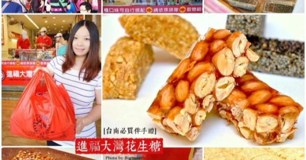 「進 福大灣花生糖」堅持手工現做,現點現切現賣,讓看似平凡簡單的花生糖變成超熱門的伴手禮!他們家的花生糖採用品質優良、顆粒較大的新鮮花生,搭配麥芽糖、 砂糖下去熬煮而成,不但吃得到花生濃濃的香氣與爽脆口感,也吃得到麥芽糖甜蜜的芳香!花生捲也是大口非常喜愛的產品,吃起來軟Q細膩,花生味濃鬱,微微香 甜的口感讓人喜愛!黑芝麻更是養生聖品,不但香氣十足,甜度更低,讓人口齒留香!來到台南一定不能錯過這款送禮自用兩相宜的超夯伴手禮,吃過一次保證就讓 人回味無窮、意猶未盡啊!
