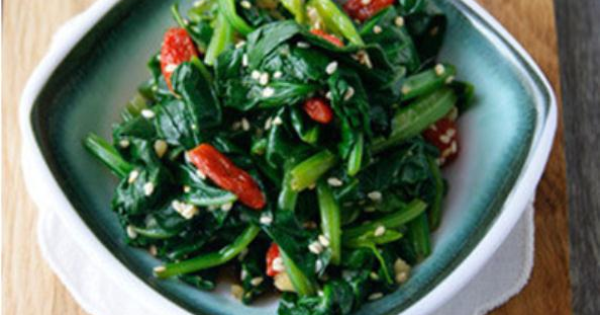 用料:菠菜500克、薑10克、生抽15毫升、陳醋15毫升、食鹽3克、白砂糖3克、香油2毫升、白芝麻3克