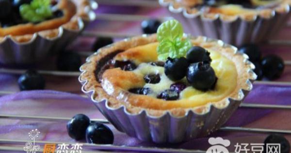 6.倒掉塔皮裏的豆子把蛋撻液倒進去8分滿,然後放入洗幹淨的藍莓