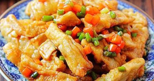 8.料汁冒泡後,加入炸好的切條下鍋翻炒,使每根切條均勻裹滿料汁即可