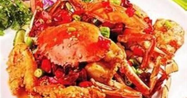 1.活蟹宰殺洗凈後剁成塊,切口處蘸幹面粉,放植物油中炸成淺金黃色。 2.雞蛋清加高湯150克、鹽、味精、少許水澱粉調勻,放滑勺中炒熟為芙蓉。 3.滑勺內加植物油燒熱,即加入蔥炒出香味,加入蟹塊翻炒,烹料酒,倒入芙蓉翻炒,淋辣椒油出勺裝盤。