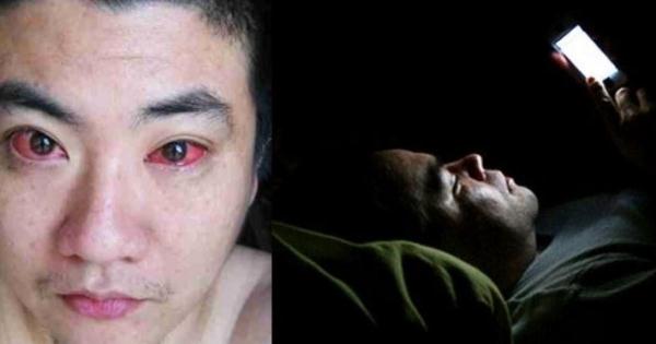熄燈後長時間玩手機容易造成眼睛「視疲勞」