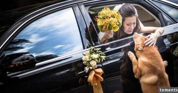 一張照片道盡人狗分離的辛酸,一隻柴犬在女主人出嫁當天,不捨地趴在禮車上。