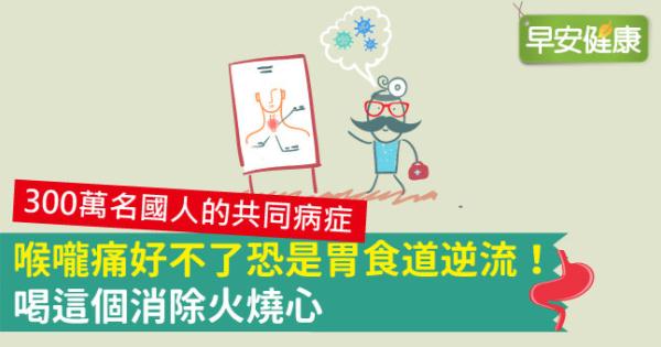 臺北中山醫院腸胃科醫師吳德強表示,喉嚨痛就是很多胃食道逆流病人常出現的症狀,有許多人因為喉嚨痛一直都好不了,去耳鼻喉科就醫,但卻被轉診到腸胃科,這才確診是因為胃食道逆流引起的喉嚨痛。