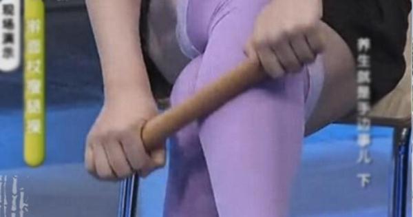 3、翹起二郎腿,用左腿的膝蓋抵住右腿的窩處,正向握住搟面杖,用搟面杖的中部從外踝逐漸向上滾動。搟的過程中要避開骨頭隆起的地方,儘量搟在肉厚的地方。同時在搟的過程中我們可以加強某個局部的刺激,如:腿部的豐隆穴(位於小腿外側中間的位置)。