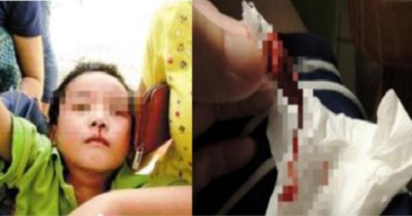 媽媽看到這個情形馬上把衛生紙拿出來,然後把孩子抱起往醫院去。
