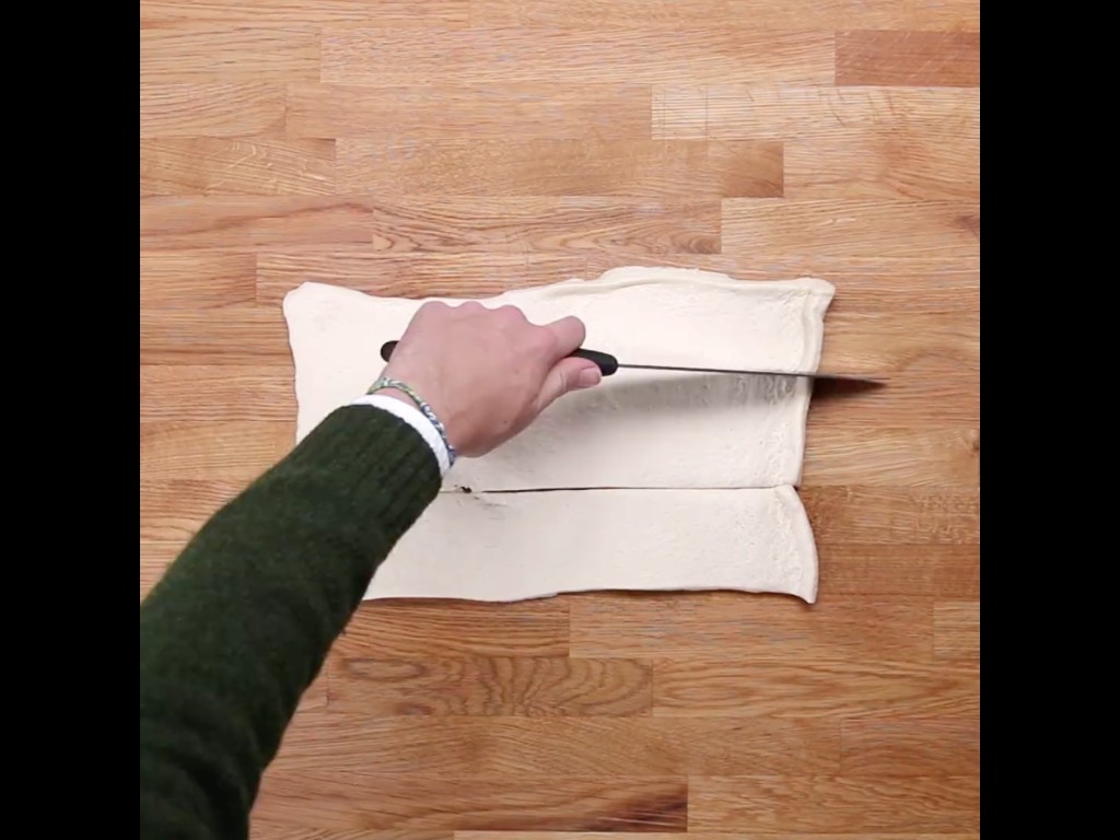 他將面糰切成三份並且「在上頭灑上滿滿的起司」,完成終極美食後我決定馬上蹺班買材料回家做!