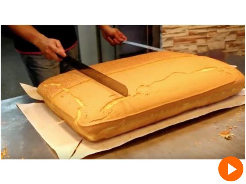 蛋糕店當日送出蛋香濃鬱又軟綿的新鮮蛋糕總是非常受歡迎,你看到過剛出爐的蛋糕是如何分切的嗎?