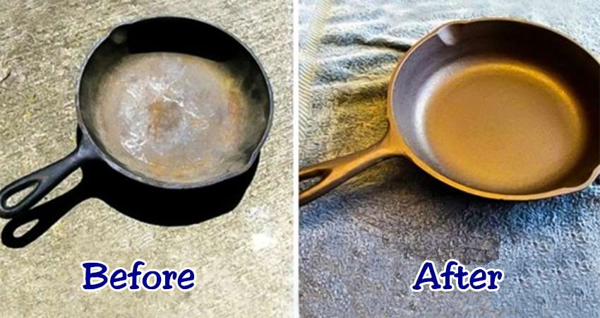 (6) 時間到了後將鍋子拿出來,小心的倒入一些橄欖油,等待熱熱的鐵鍋金屬吸收了部分的油後,再將多餘的油脂用乾淨的布擦掉。
