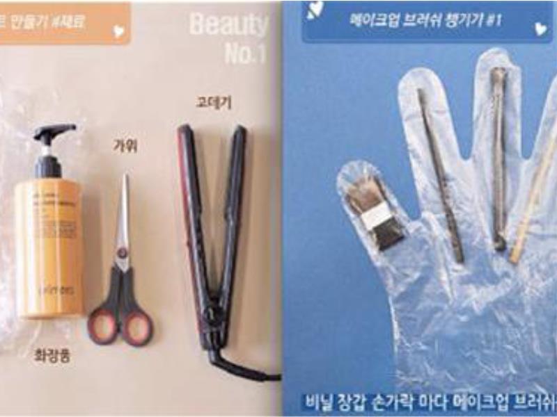 而且這個塑膠手套的用法還不只這樣,如果你需要帶一些化妝用的刷具但又不想讓它們在化妝包裡亂滾,也可以把這些用具裝到手套裡在捲起來,簡單的保護套就完成了!