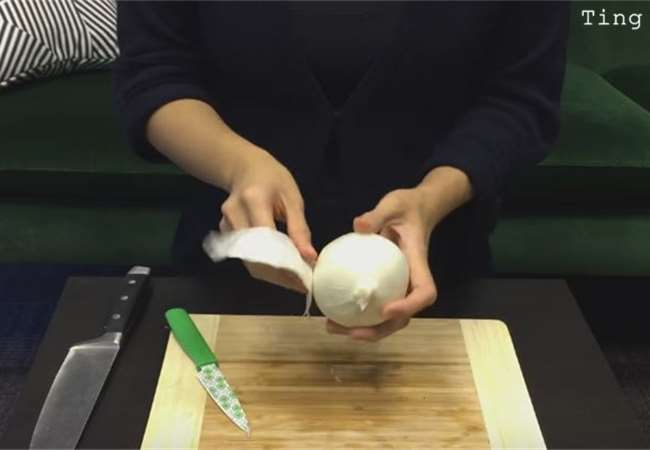 5、拔除之後你就可以開始幫洋蔥脫皮。