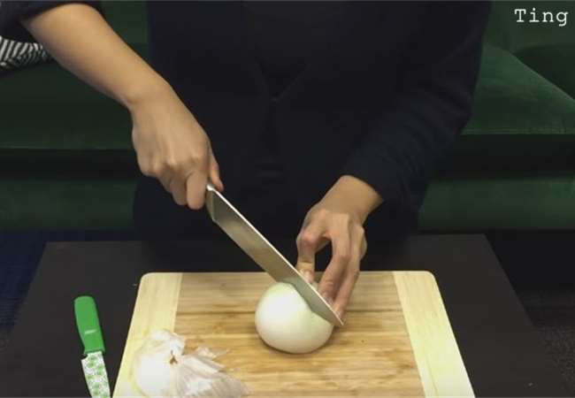 沒想到居然用這個方法就不會流淚了呢~以後都要這樣切洋蔥哦!