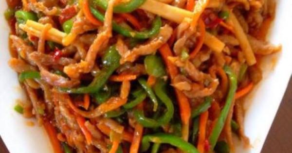 主料: 裡脊肉200g,青椒適量,胡蘿蔔適量,竹筍適量,香蔥適量;