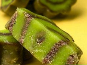 3.將綠豆粉與青梅粒、核桃仁粒、糖和桂花醬放入盆內,搓勻,淋些涼開水使綠豆粉濕潤,將綠豆粉放入小圓模內鋪勻壓實,扣出,即可食用。