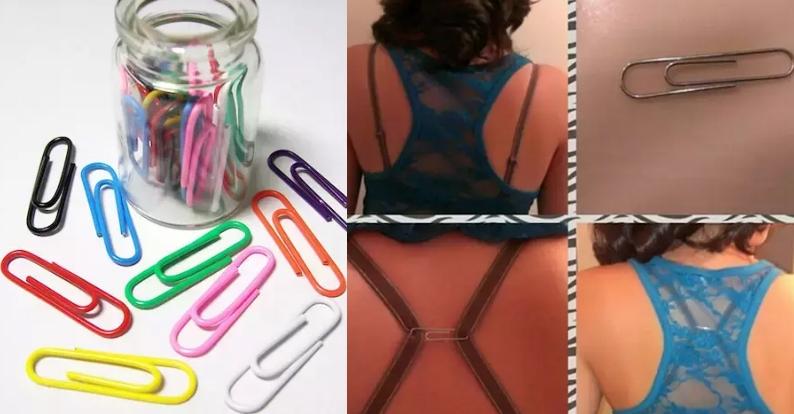 NO.5夏天女生想穿性感點的背心,但是露出來內衣帶很醜有木有。用迴紋針像圖中那樣在後面拉住,不僅“隱形”,還能防止肩帶滑落。