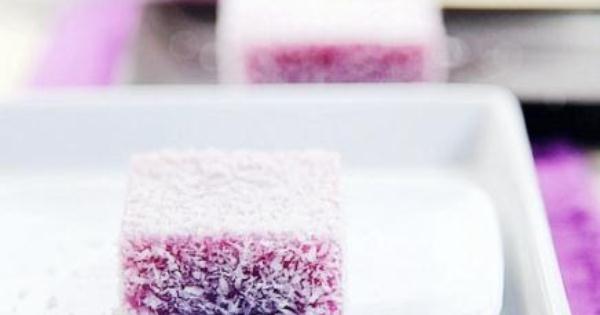 6、將冷藏好的紫薯涼糕取出,用刀切成16小塊。將切好的涼糕在椰蓉裡滾一圈,使表面均勻粘上一層椰蓉,就可以裝盤食用了。