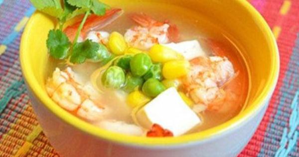 4、放入豌豆粒、玉米粒繼續煮兩分鐘;淋入水澱粉勾薄芡,最後調入少許鹽,撒上洗凈的香菜即可。