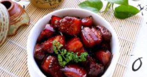 做這道菜時最好選用冰糖,冰糖甜度高,味純,透明度也高,乃是燒這道菜成色的關鍵,冰糖塊大的,要事先敲碎,冰糖的用量要敢放,捨得放,糖的數量,大約按一斤肉一兩糖的比例。