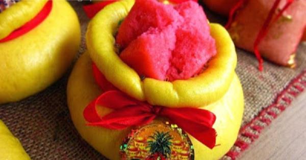 Note:依個人喜好,也可以在蒸好的錢袋發糕上點上紅點。