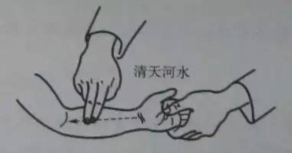 這條通道的主幹線其實就是我們的前臂中線。古傳中醫有「清天河水、退六腑、清肺經」的退燒和止咳方法。