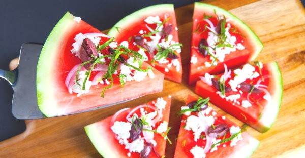 在西瓜上灑點起司和蘿勒,或是想加火腿和洋蔥也可以,嗯...小編有點難想像那個味道。