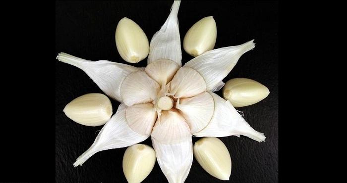 用刀切去大蒜根部