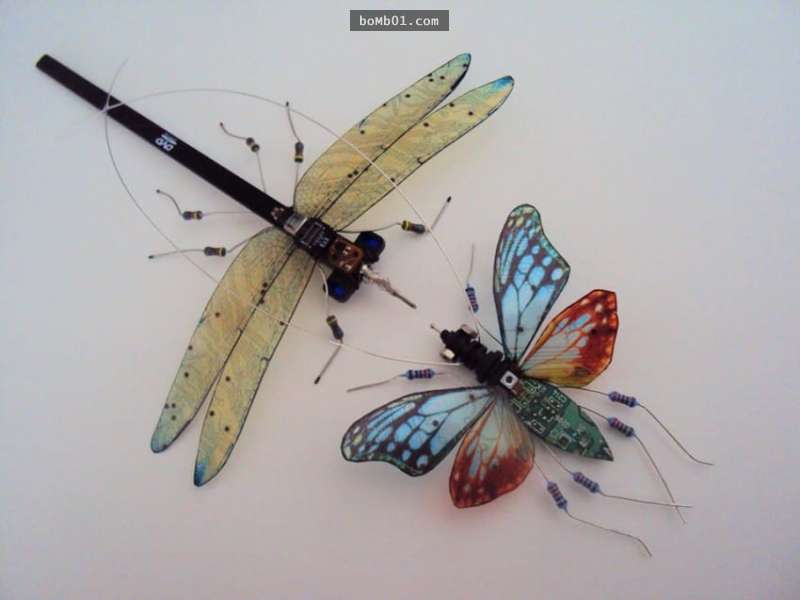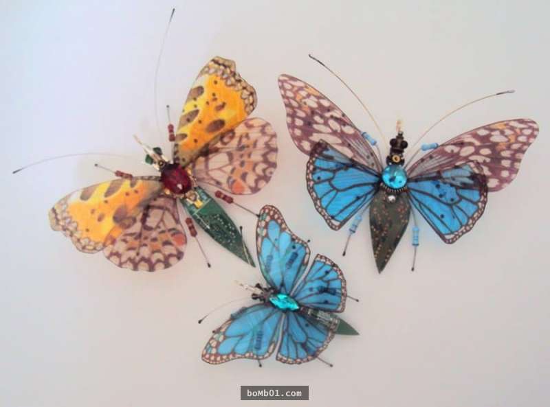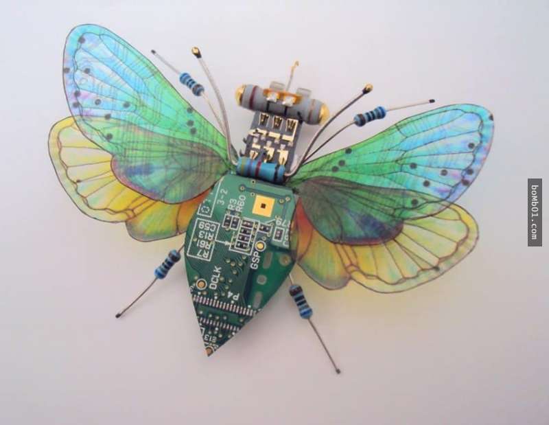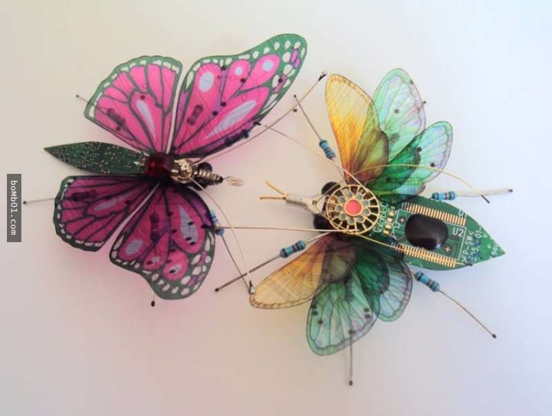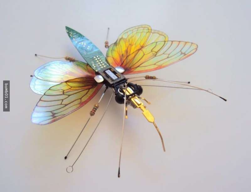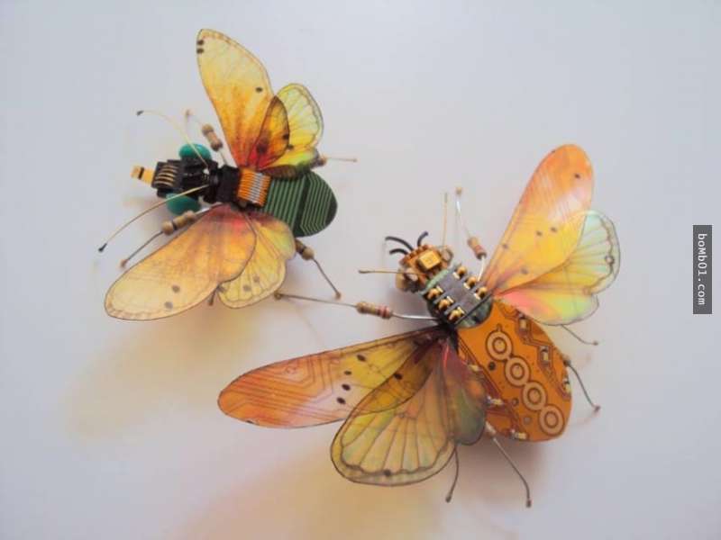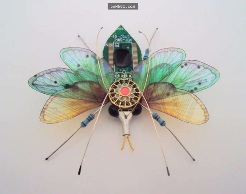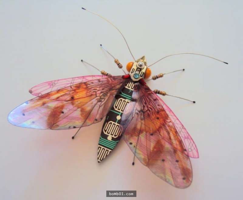 ▼她用廢舊電腦和電子產品的小零件製作微小昆蟲,並取名為「Computer Bugs」。