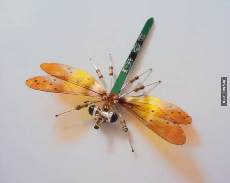▼她將複雜的零件切割成為昆蟲身體的組成部分,做成的飛蟲惟妙惟肖。