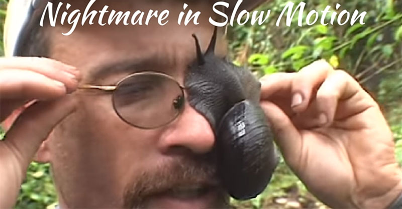 這畫面真的有夠噁心呢…怎麼會有人讓這個大隻的蝸牛住在臉上。