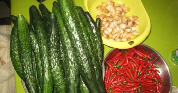 1、黃瓜洗乾淨以後,晾乾表面的水分,尖椒和蒜也要洗凈晾乾。