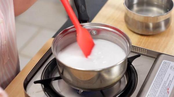 另起一鍋,加入500g鮮椰汁,8g瓊脂攪勻
