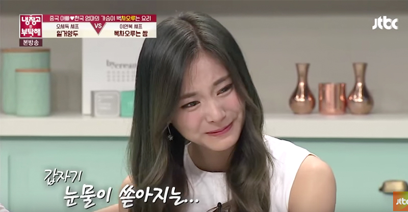 長期待在國外的周子瑜最近跟TWICE的團員參加了美食節目《拜託了冰箱》,讓各大名廚來表演手藝。就在節目中她吃了一口後說「這個跟我小時候在家吃的味道一樣呢!感覺很幸福」,結果當主持人回問說「這樣會想起媽媽嗎?」時,(在1:30的時候)周子瑜沉沒了,結果淚就流了下來!讓人看到心疼…