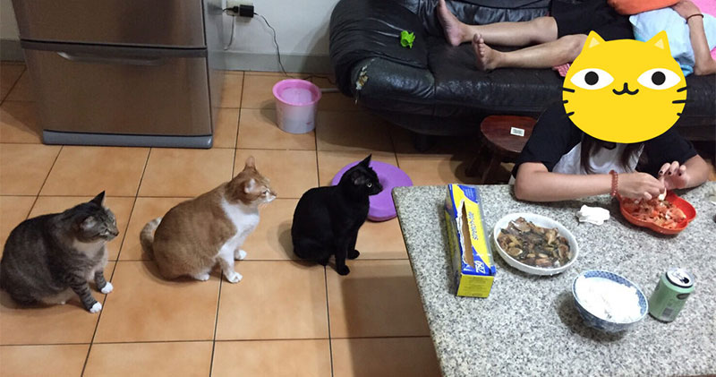 貓星人有時候做的事情真的會讓人搞不懂到會很生氣,但有時又可愛到不行。這是在Dcard上網友分享的故事,她說日前回家時媽媽煮了炒蝦,她開心的在撥蝦,結果感覺到怪怪的,所以一轉頭就看到了這奇特又爆笑的景象!