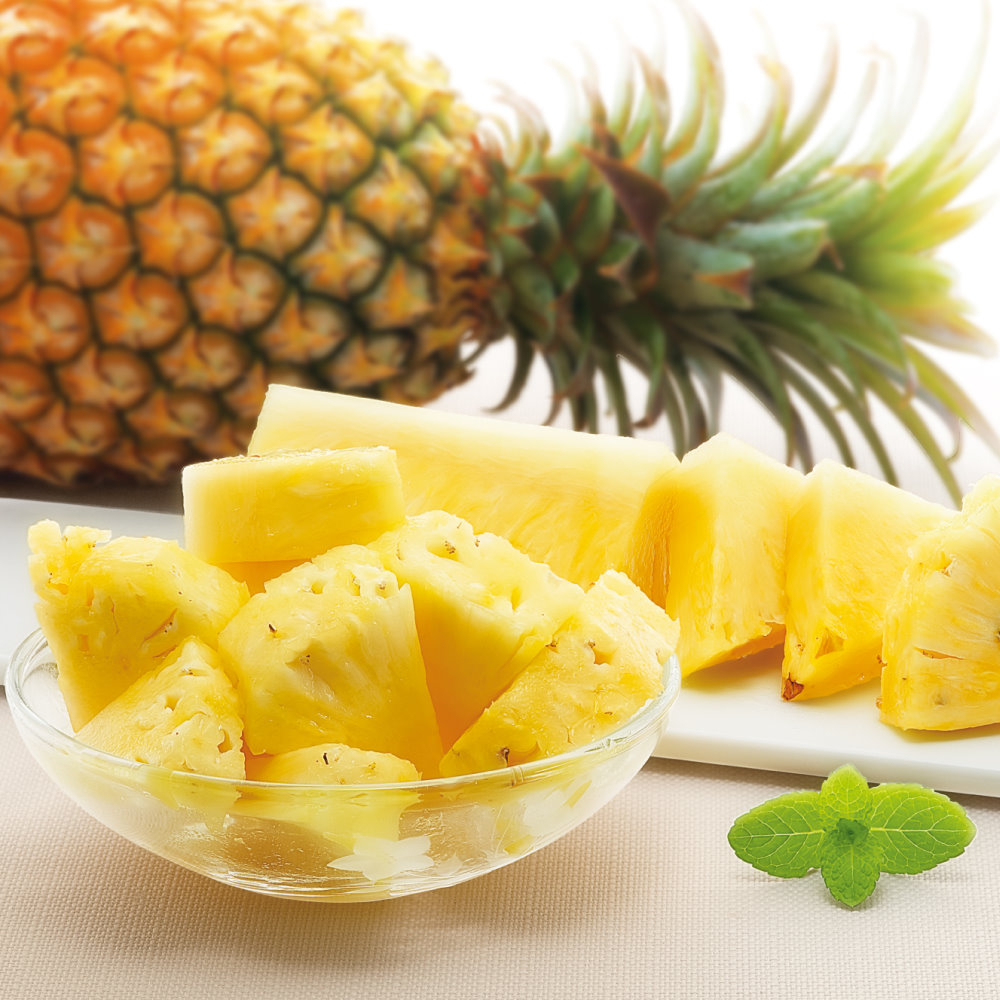 鳳梨含豐富膳食纖維,在夏季能解決食慾不振的困擾,品質好的鳳梨除了外表金黃、有完整鱗片,還可用手指輕彈聽聲音,如果上半與下半部聲音一樣,代表果肉品質一致。買回來的鳳梨可以儲放在常溫。