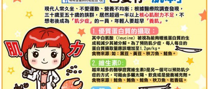 現代人常久坐、不愛運動、營養不均衡,根據之前醫療院所做的調查發現,三十歲至五十歲的族群,居然超過一半以上核心肌耐力不足,不想老後成為「肌少症」的一員,年輕人要趁早「養肌」。