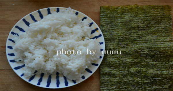 準備好食材,米飯最好是涼的比較好,紫菜可以用紫菜包飯的那種。